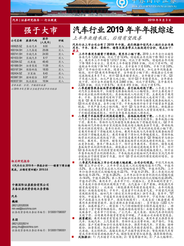 【中银证券】【20190903】汽车行业2019年半年报综述:上半年业绩承压,后续有望改善-22页