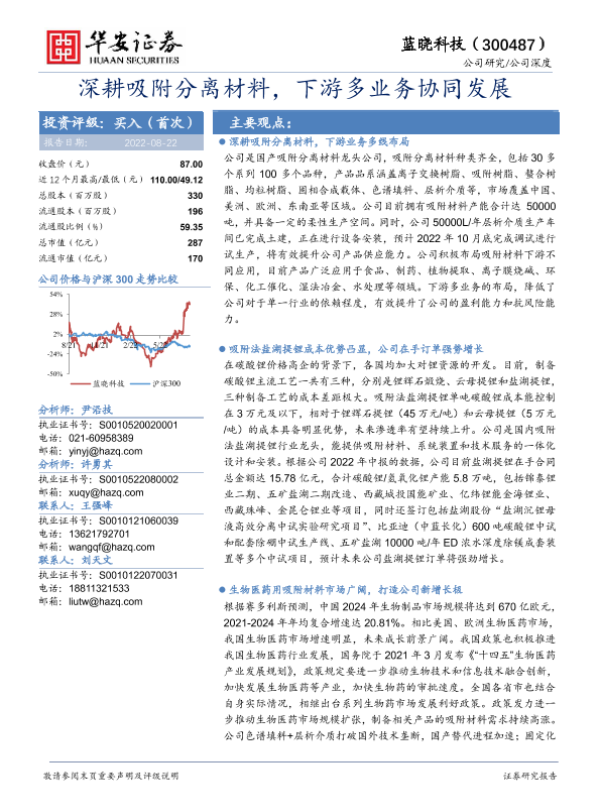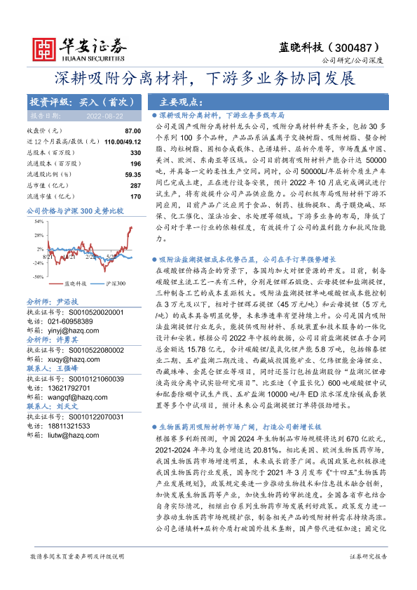 【华安证券】【20220822】深耕吸附分离材料,下游多业务协同发展-30页