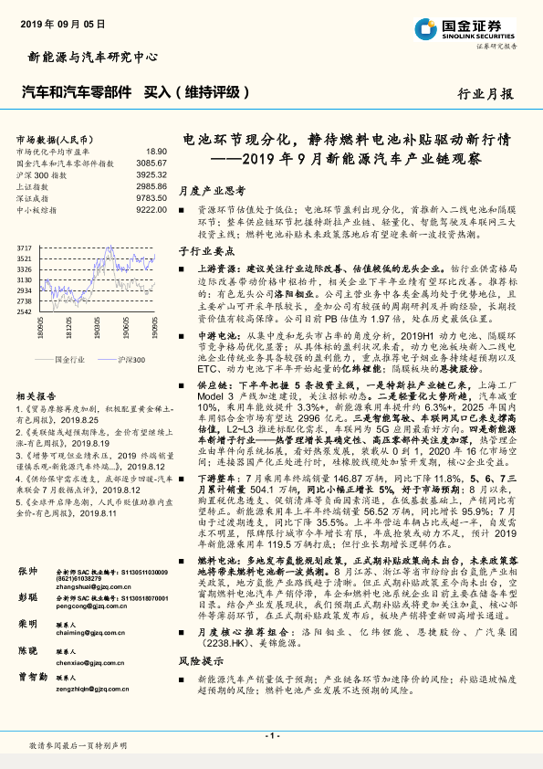 【国金证券】【201909】2019年9月新能源汽车产业链观察:电池环节现分化,静待燃料电池补贴驱动新行情-42页