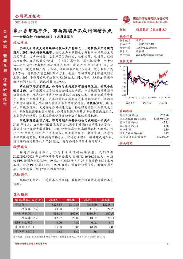【东亚前海证券】【20220823】20220823-东亚前海证券-新疆众和-600888.SH-首次覆盖报告:多业务领跑行业,布局高端产品成利润增长点-42页