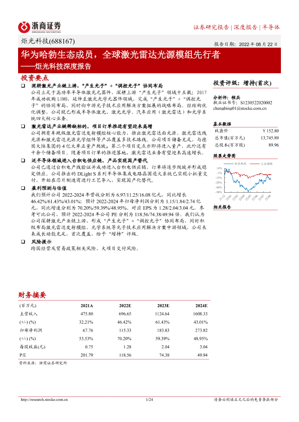【浙商证券】【20220822】炬光科技深度报告:华为哈勃生态成员,全球激光雷达光源模组先行者-24页