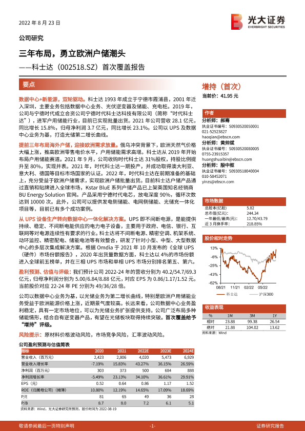 【光大证券】【20220823】20220823-光大证券-科士达-002518.SZ-首次覆盖报告:三年布局,勇立欧洲户储潮头-24页