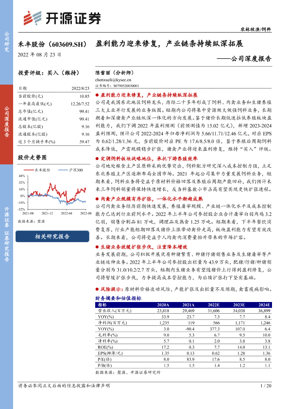 【开源证券】【20220823】禾丰股份-公司深度报告:盈利能力迎来修复,产业链条持续纵深拓展-20页