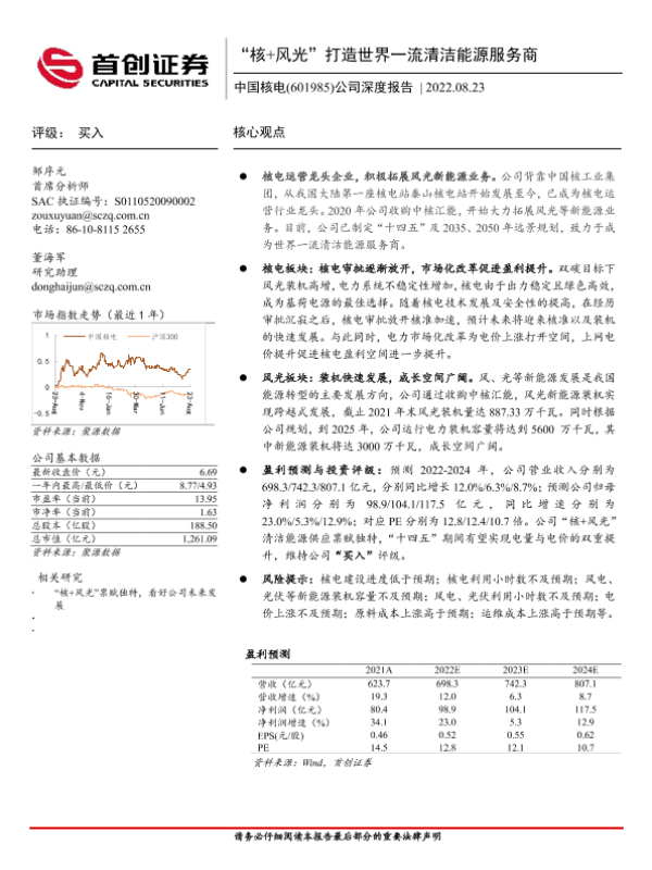 【首创证券】【20220823】中国核电(601985)公司深度报告:“核+风光”打造世界一流清洁能源服务商-26页