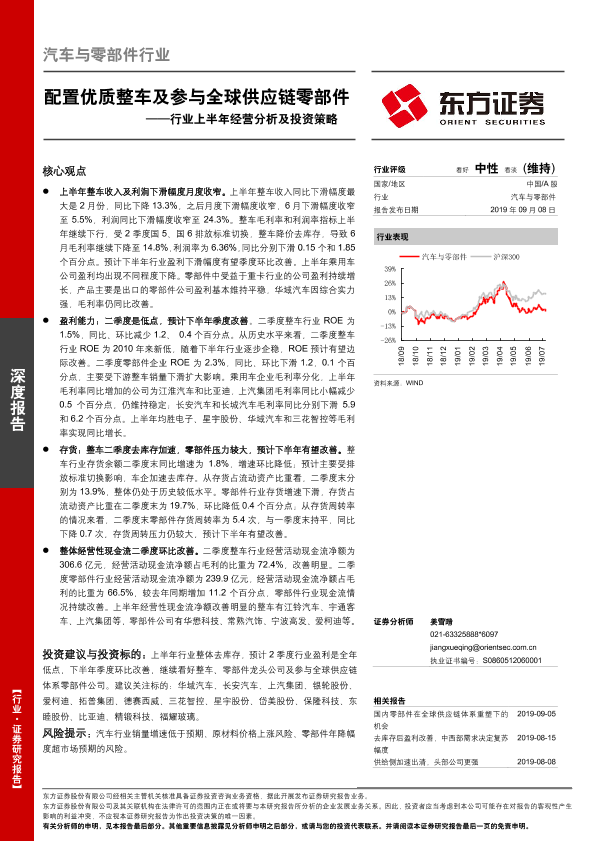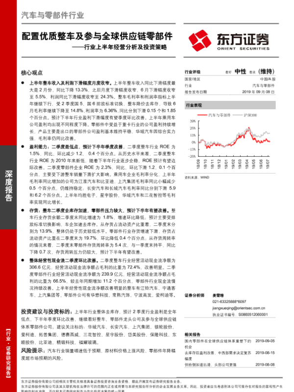【东方证券】【20190908】汽车与零部件行业上半年经营分析及投资策略:配置优质整车及参与全球供应链零部件-21页