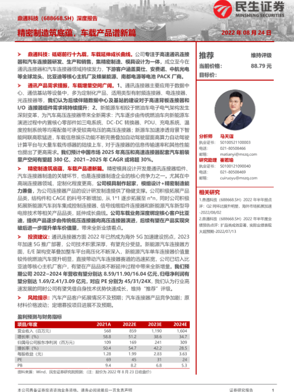 【民生证券】【20220824】20220824-民生证券-鼎通科技-688668.SH-深度报告:精密制造筑底蕴,车载产品谱新篇-34页