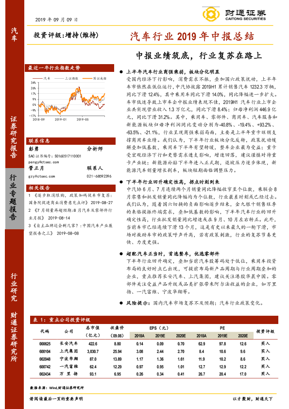 【财通证券】【20190909】汽车行业2019年中报总结:中报业绩筑底,行业复苏在路上-27页
