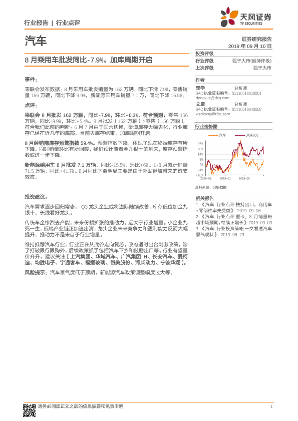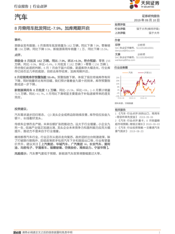 【天风证券】【20190910】汽车:8月乘用车批发同比-7.9%,加库周期开启-10页
