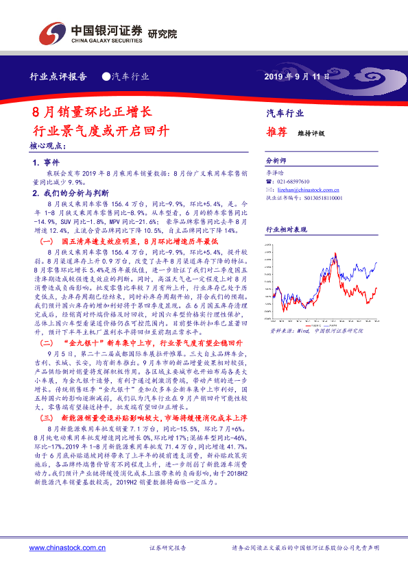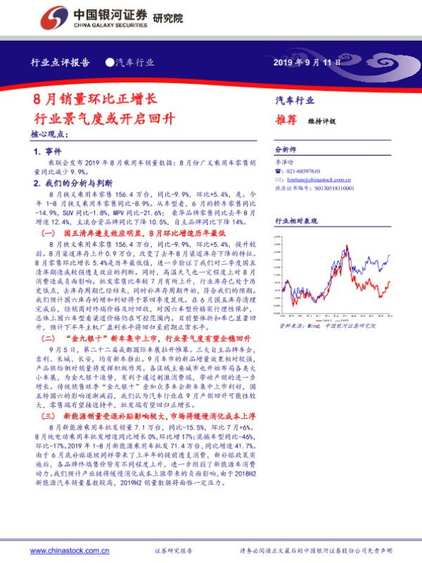【银河证券】【20190911】汽车行业:8月销量环比正增长,行业景气度或开启回升-4页