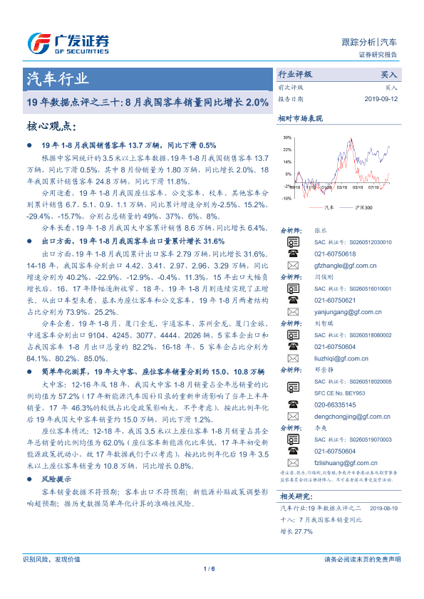 【广发证券】【20190912】19年数据点评之三十:8月我国客车销量同比增长2.0%-6页