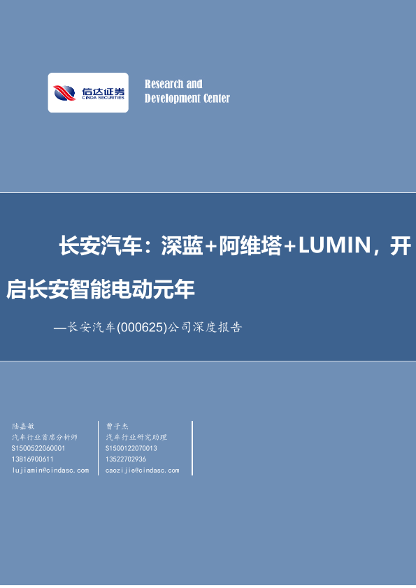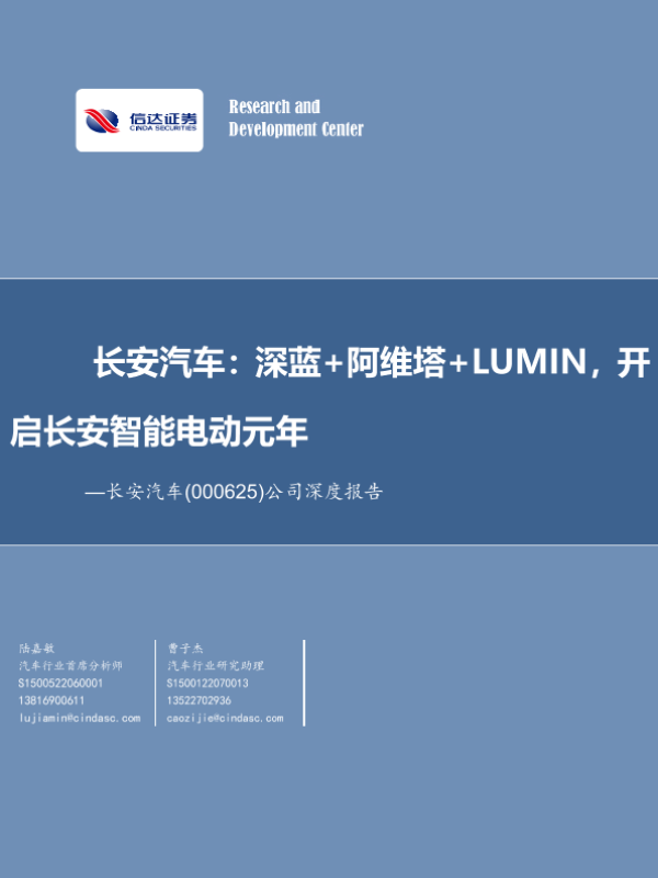 【信达证券】【20220824】长安汽车:深蓝+阿维塔+LUMIN,开启长安智能电动元年-38页