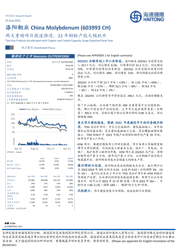 【海通国际】【20220825】两大重磅项目提速推进,23年铜钴产能大幅跃升-23页