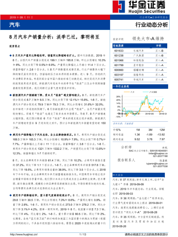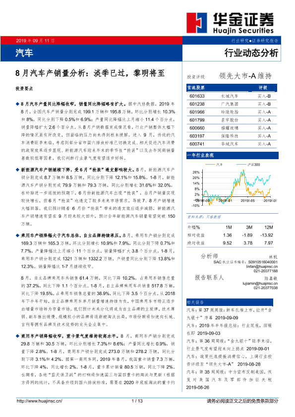 【华金证券】【20190911】8月汽车产销量分析:淡季已过,黎明将至-13页