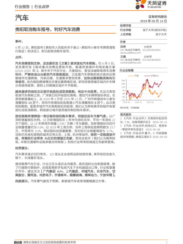 【天风证券】【20190914】汽车行业点评:贵阳取消购车摇号,利好汽车消费-2页