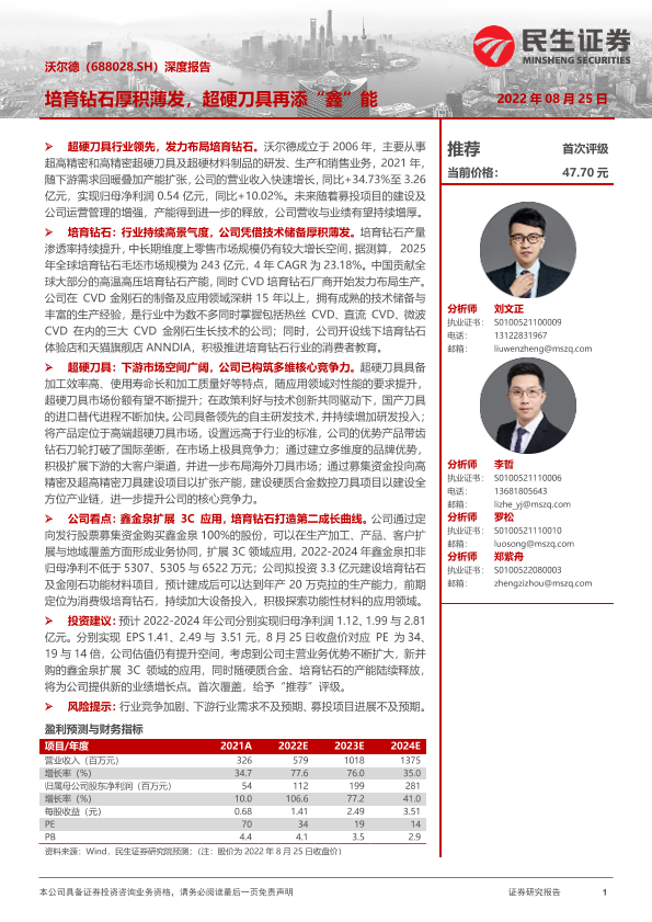 【民生证券】【20220825】20220825-民生证券-沃尔德-688028.SH-深度报告:培育钻石厚积薄发,超硬刀具再添“鑫”能-38页