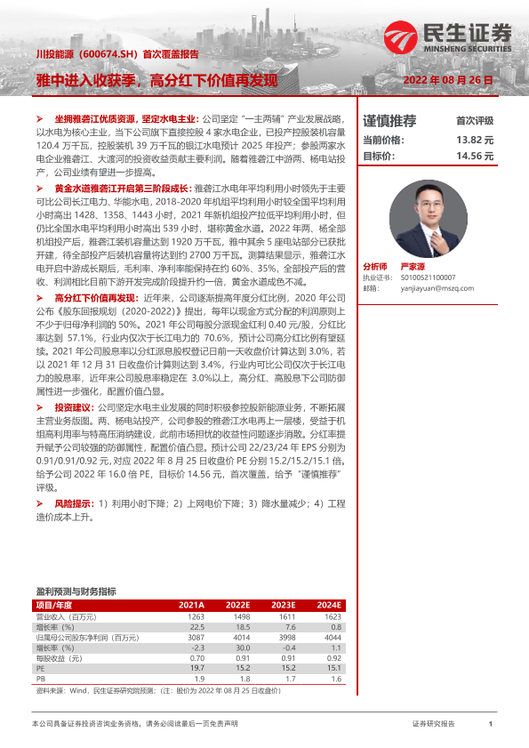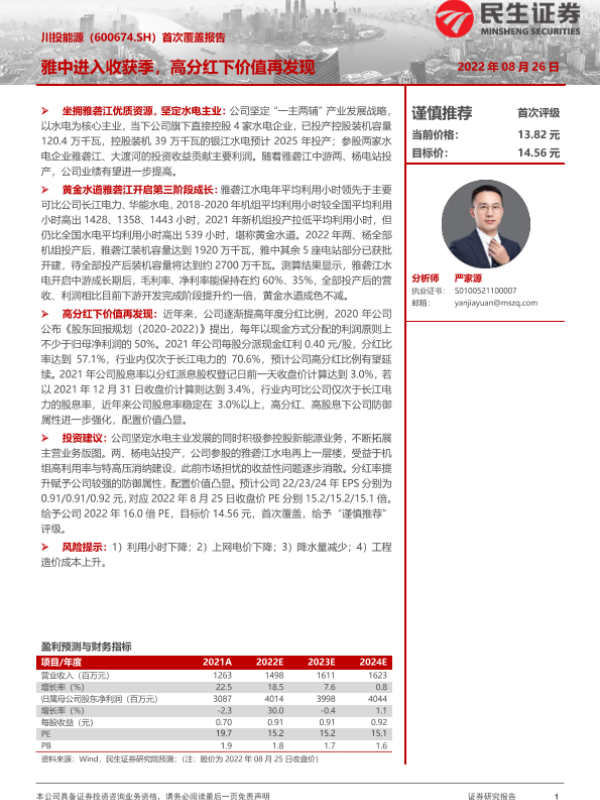 【民生证券】【20220826】20220826-民生证券-川投能源-600674.SH-首次覆盖报告:雅中进入收获季,高分红下价值再发现-32页