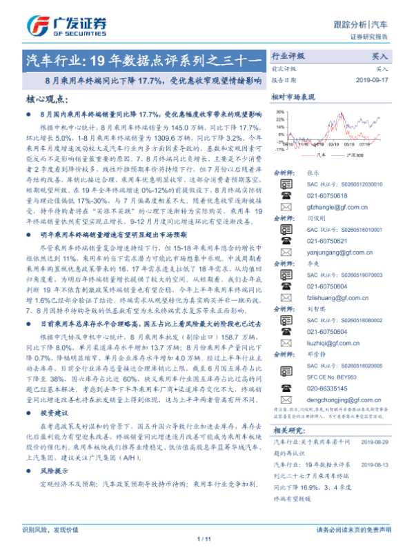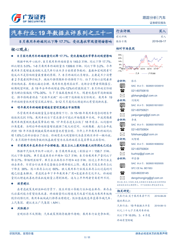 【广发证券】【20190917】19年数据点评系列之三十一:8月乘用车终端同比下降17.7%,受优惠收窄观望情绪影响-11页