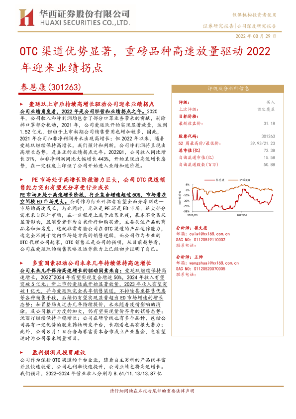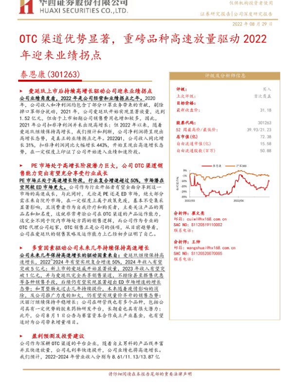 【华西证券】【20220829】OTC渠道优势显著,重磅品种高速放量驱动2022年迎来业绩拐点-26页