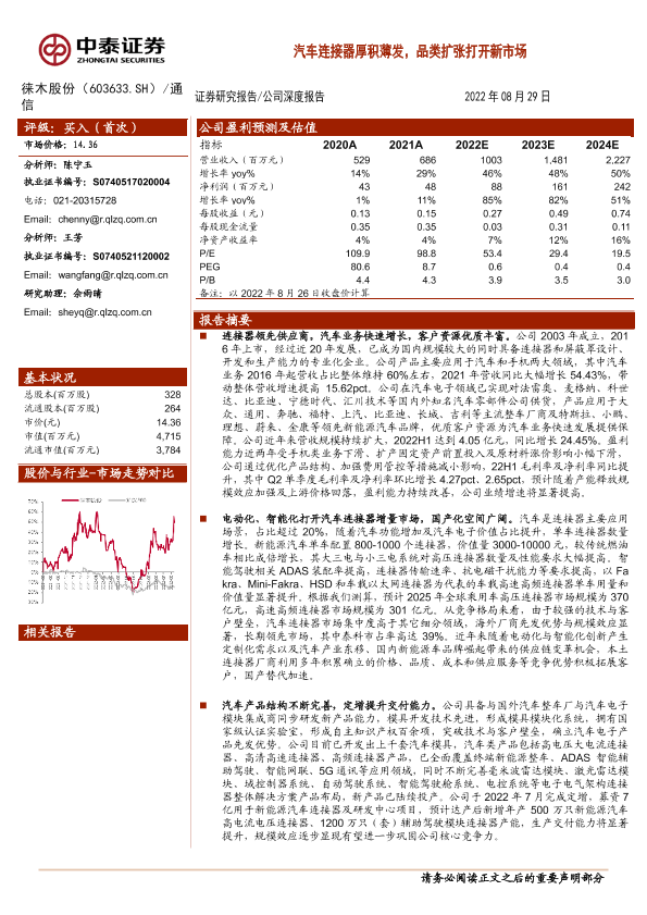 【中泰证券】【20220829】20220829-中泰证券-徕木股份-603633.SH-汽车连接器厚积薄发,品类扩张打开新市场-34页
