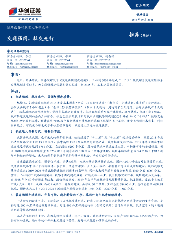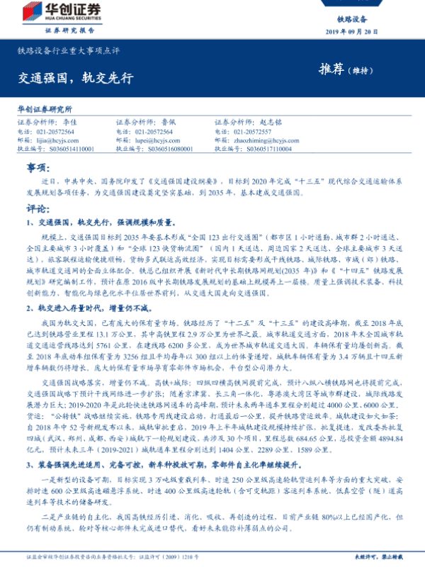 【华创证券】【20190920】铁路设备行业重大事项点评:交通强国,轨交先行-5页