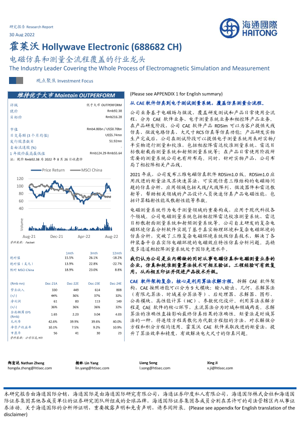 【海通国际】【20220830】霍莱沃-688682.SH-电磁仿真和测量全流程覆盖的行业龙头-35页