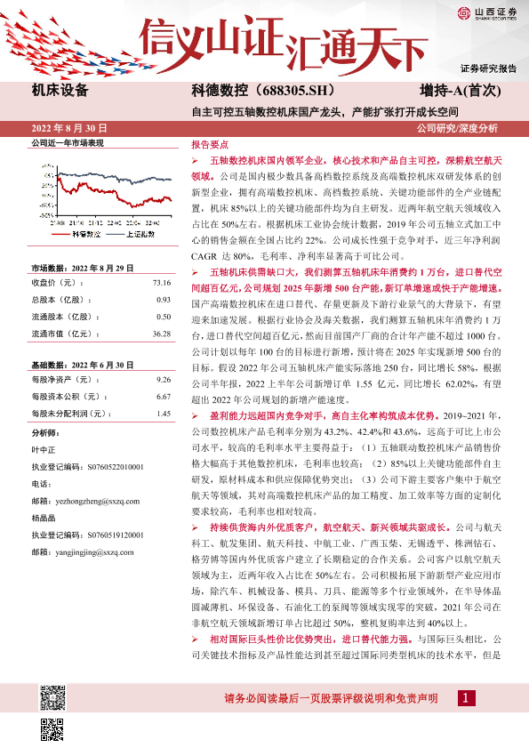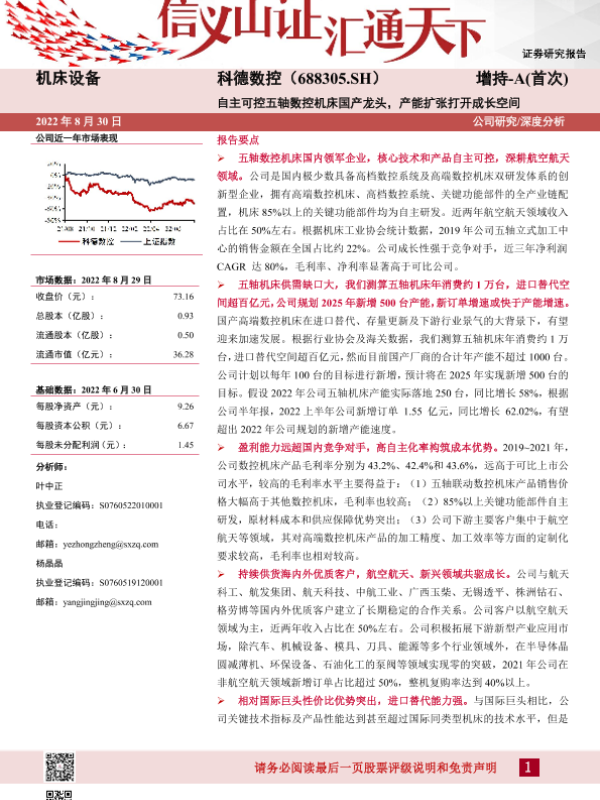 【山西证券】【20220830】科德数控-自主可控五轴数控机床国产龙头,产能扩张打开成长空间-29页