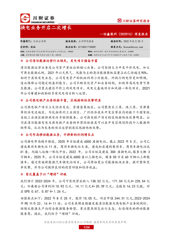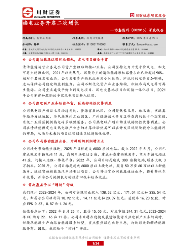 换电业务 清洁能源 热电联产 移动能源 风电项目