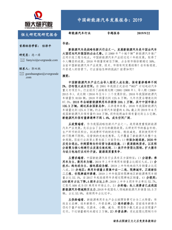 【恒大研究院】【20190922】中国新能源汽车发展报告:2019-22页