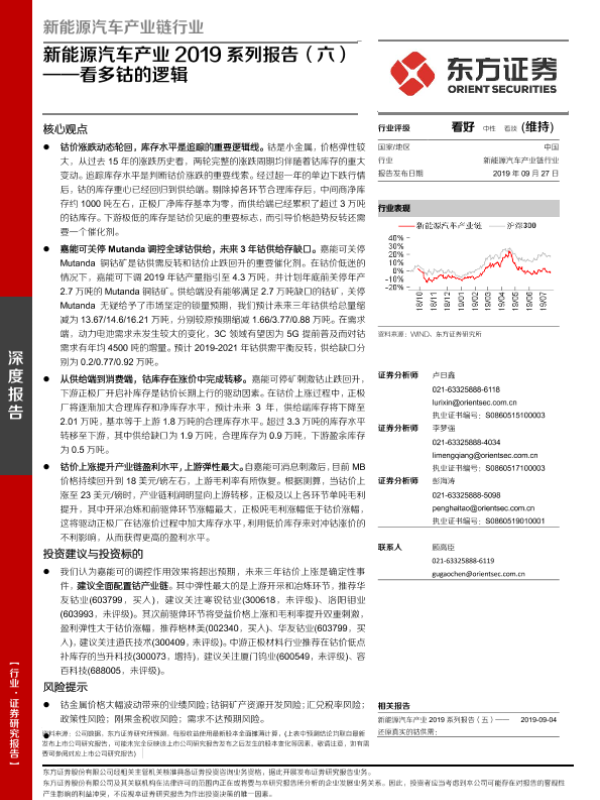 【东方证券】【20190927】新能源汽车产业2019系列报告(六)——看多钴的逻辑-20页