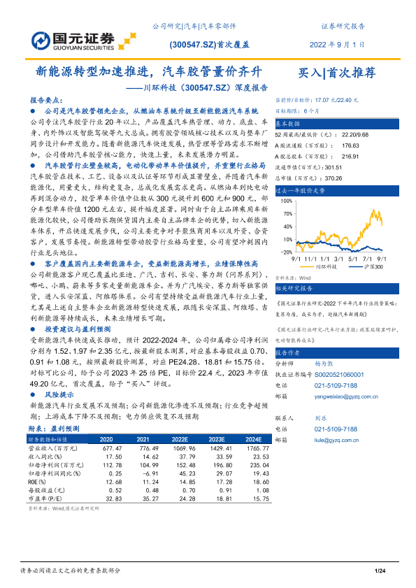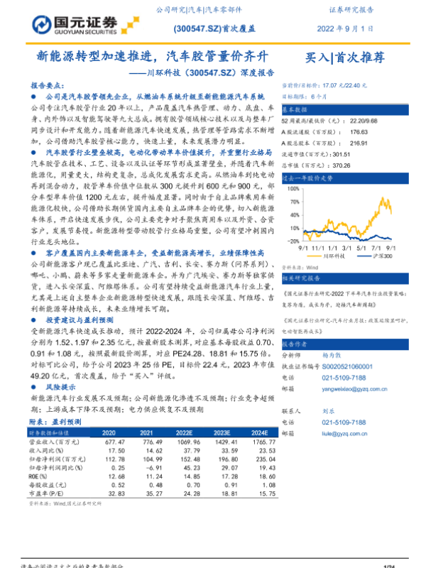 【国元证券】【20220901】新能源转型加速推进,汽车胶管量价齐升——川环科技(300547.SZ)深度报告-24页