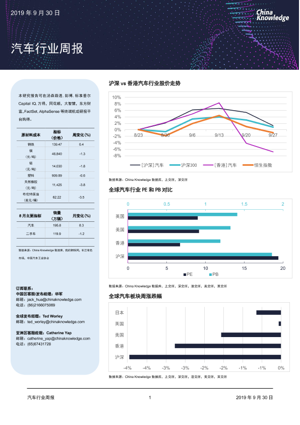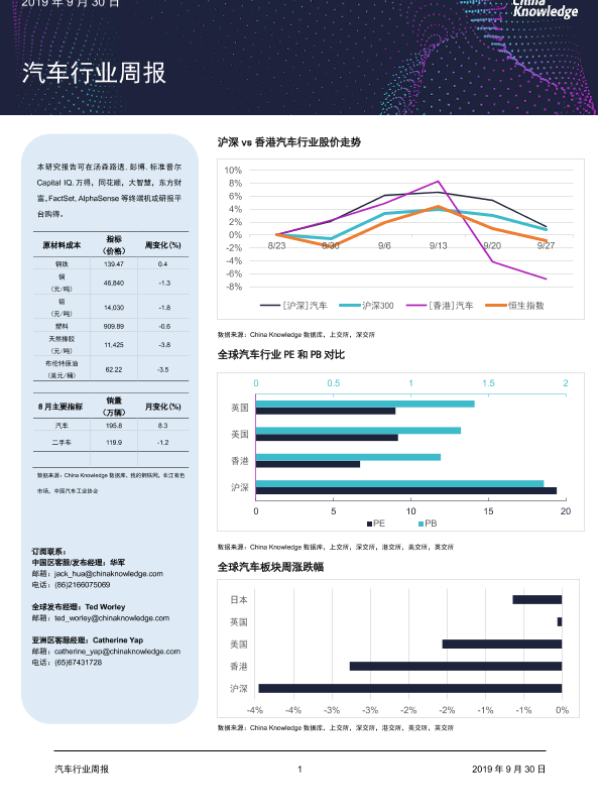 【China Knowledge】【20190930】20190930-China Knowledge-汽车行业周报-18页