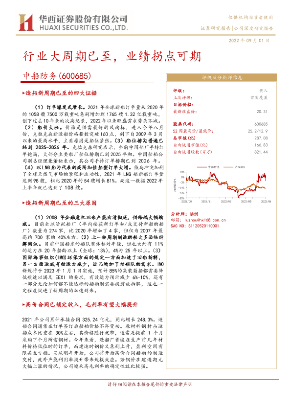 业绩拐点 军民船 毛利率提升 订单增长 造船行业