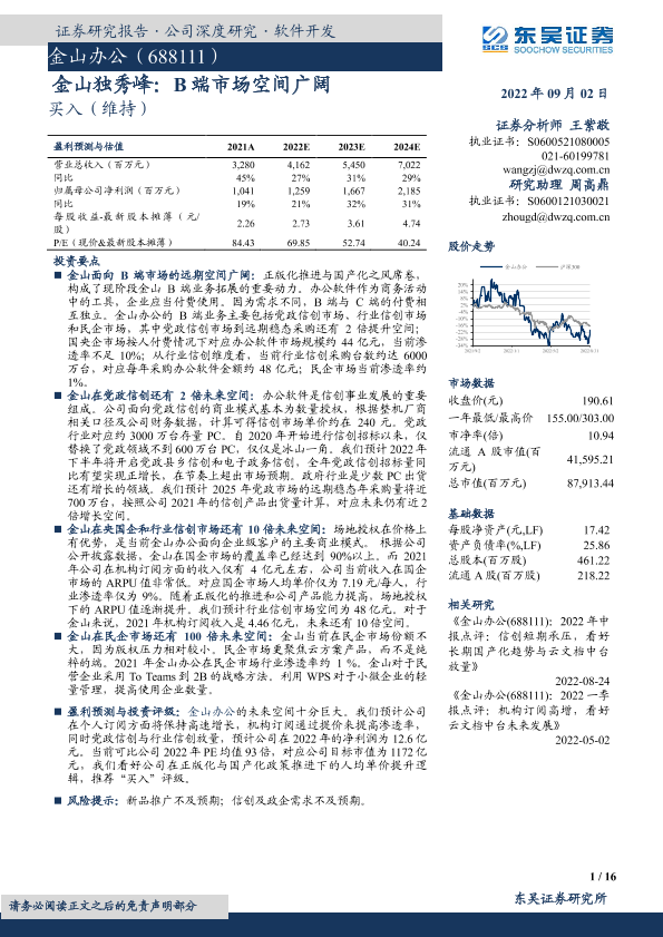 【东吴证券】【20220902】金山独秀峰:B端市场空间广阔-16页