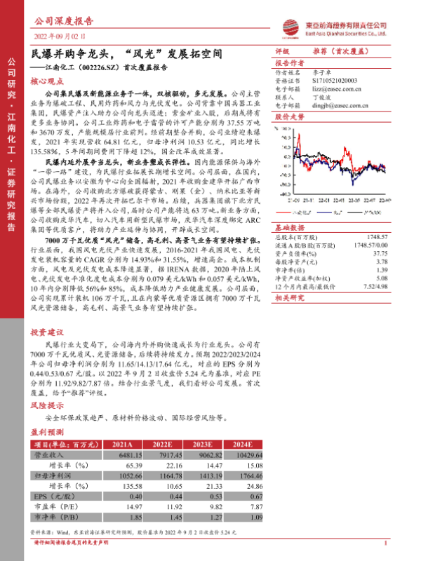 【东亚前海证券】【20220902】江南化工(002226.SZ)首次覆盖报告:民爆并购争龙头,“风光”发展拓空间-23页