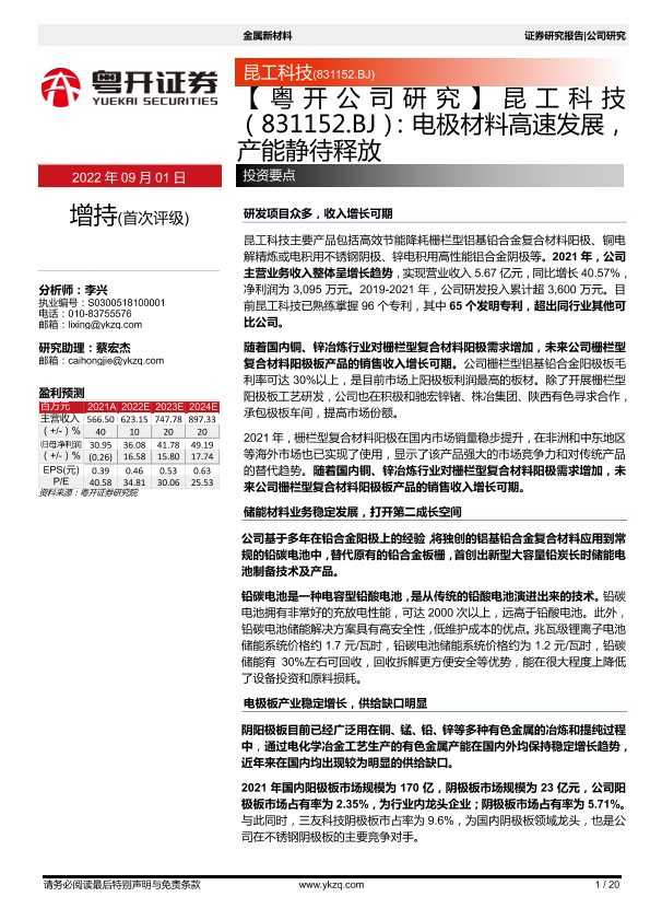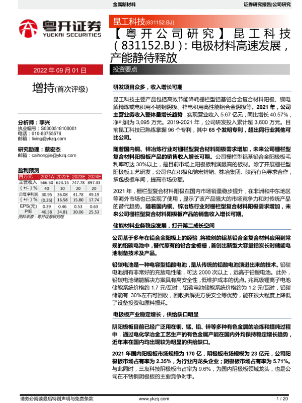 【粤开证券】【20220901】电极材料高速发展,产能静待释放-20页