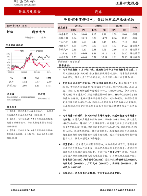 【财信证券】【20191010】20191010-财信证券-汽车行业月度报告:等待销量变好信号,关注特斯拉产业链标的-13页