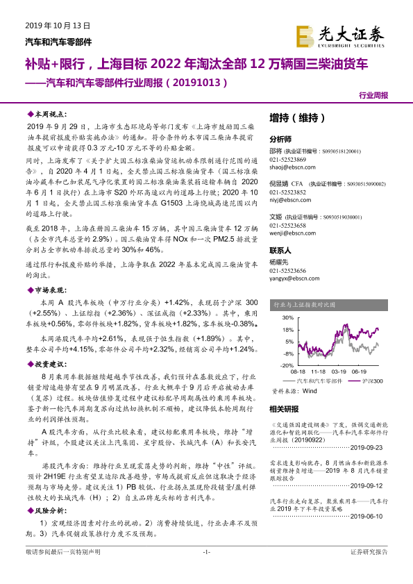 【光大证券】【20191013】汽车和汽车零部件行业周报:补贴+限行,上海目标2022年淘汰全部12万辆国三柴油货车-13页