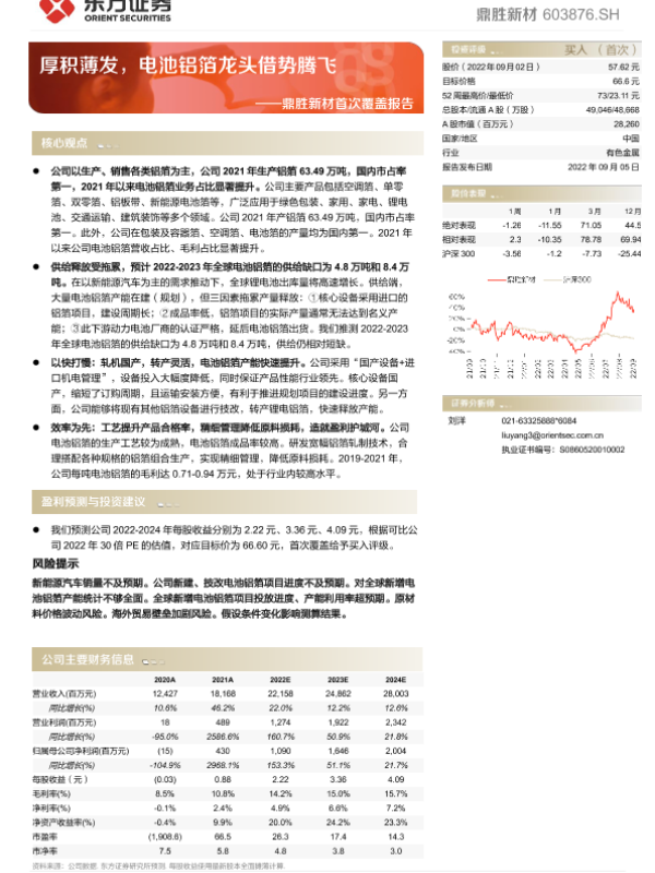 【东方证券】【20220905】鼎胜新材首次覆盖报告:厚积薄发,电池铝箔龙头借势腾飞-31页