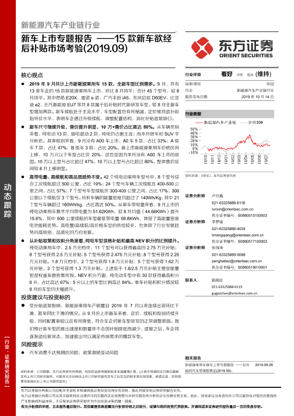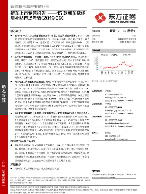 【东方证券】【20191014】新车上市专题报告:15款新车欲经后补贴市场考验-15页