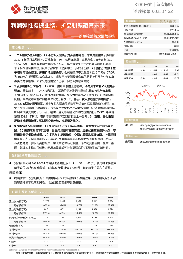 【东方证券】【20220906】涪陵榨菜首次覆盖报告:利润弹性提振业绩,扩品耕渠蕴育未来-33页