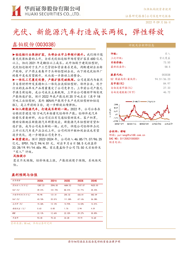 新能源汽车 证券分析 鑫铂股份 铝边框 光伏