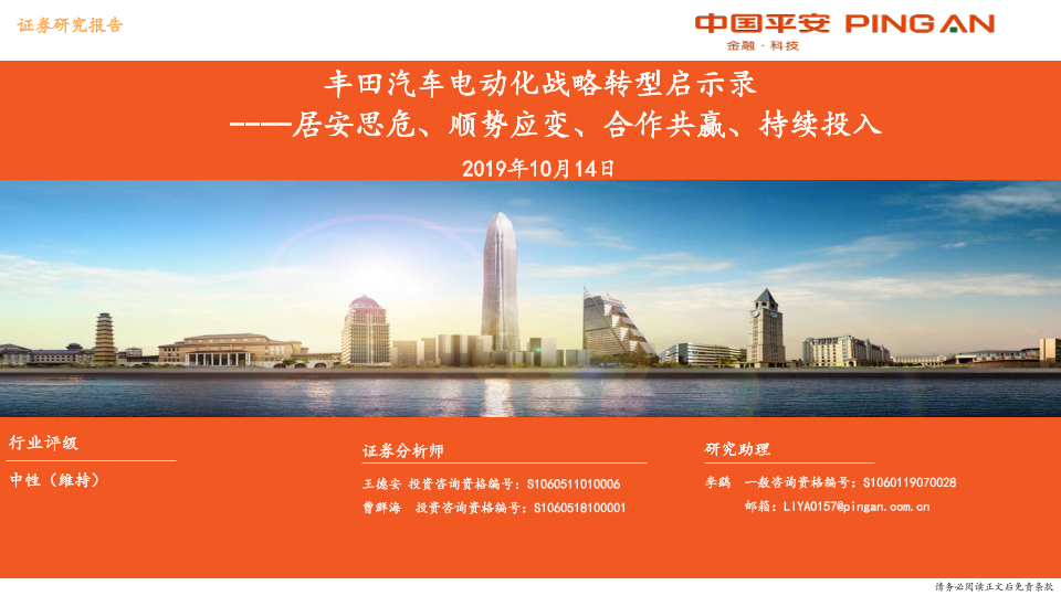 【平安证券】【20191014】丰田汽车电动化战略转型启示录:居安思危、顺势应变、合作共赢、持续投入-33页