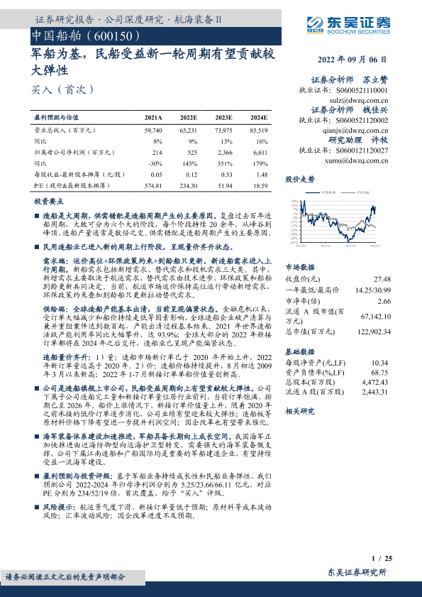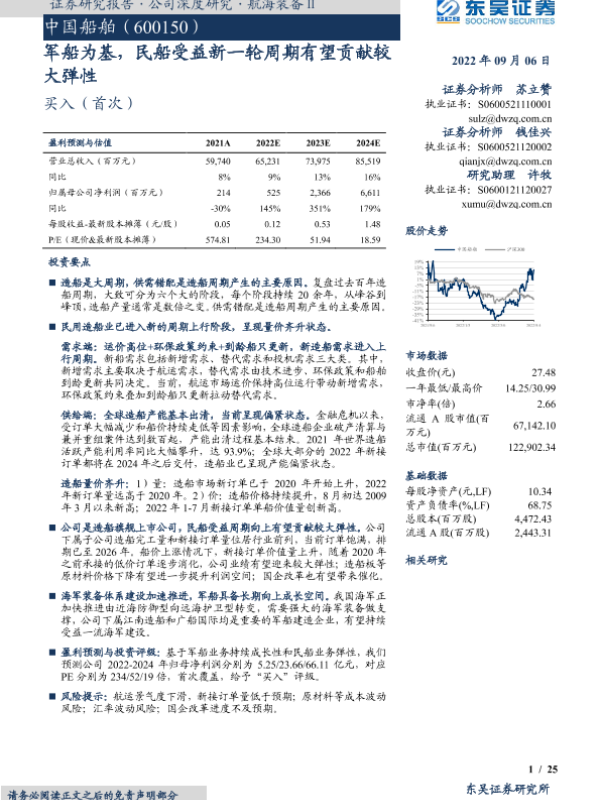 【东吴证券】【20220906】中国船舶(600150)军船为基,民船受益新一轮周期有望贡献较大弹性-25页