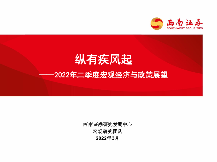 【西南证券】【20220308】2022年二季度宏观经济与政策展望:纵有疾风起-38页