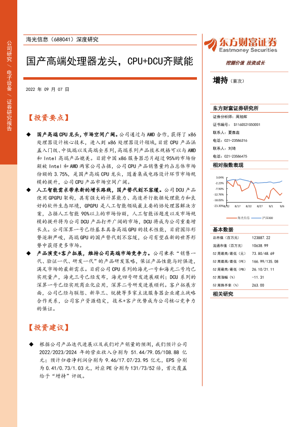 【东方财富证券】【20220907】海光信息(688041)深度研究:国产高端处理器龙头,CPU+DCU齐赋能-30页