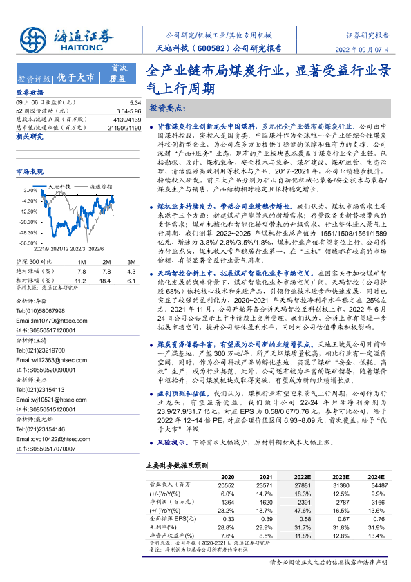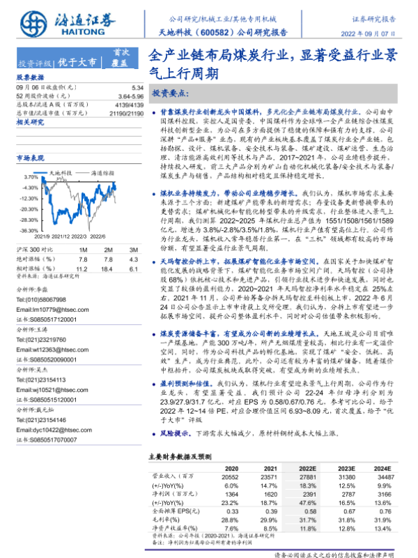 业绩预测 全产业链布局 智能化转型 机械设备 煤炭行业