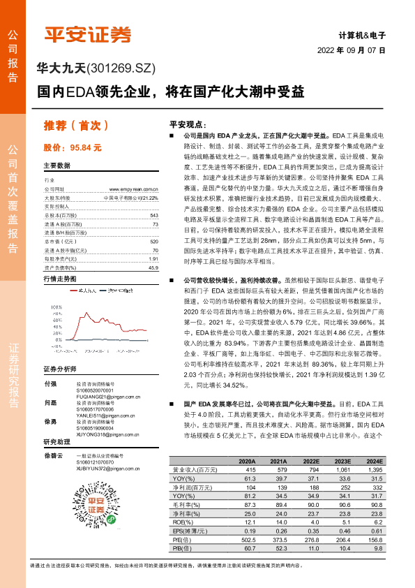 【平安证券】【20220907】国内EDA领先企业,将在国产化大潮中受益-25页