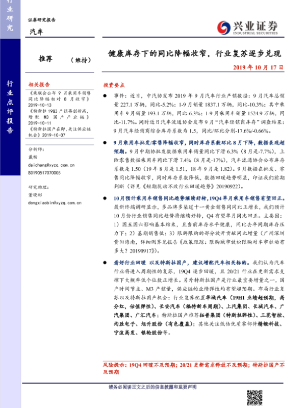 【兴业证券】【20191017】健康库存下的同比降幅收窄,行业复苏逐步兑现-4页