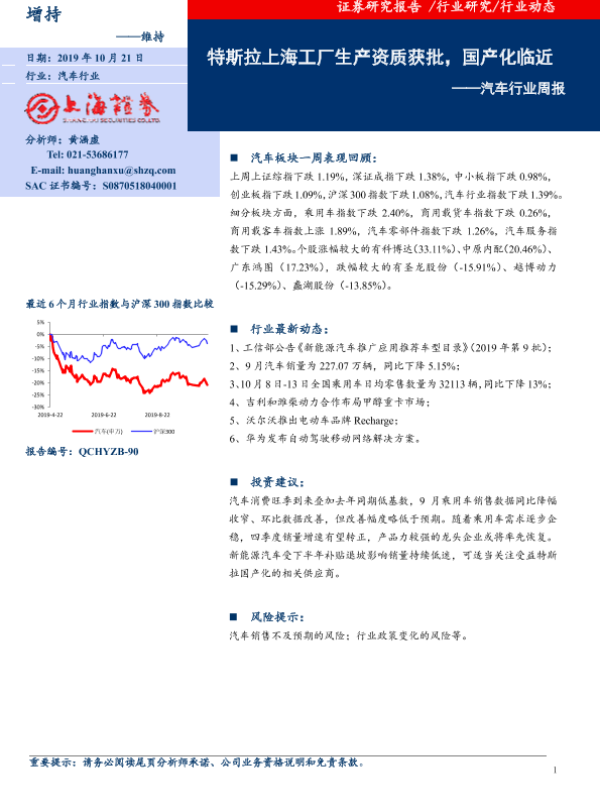 【上海证券】【20191021】20191021-上海证券-汽车行业周报:特斯拉上海工厂生产资质获批,国产化临近-8页