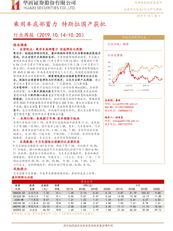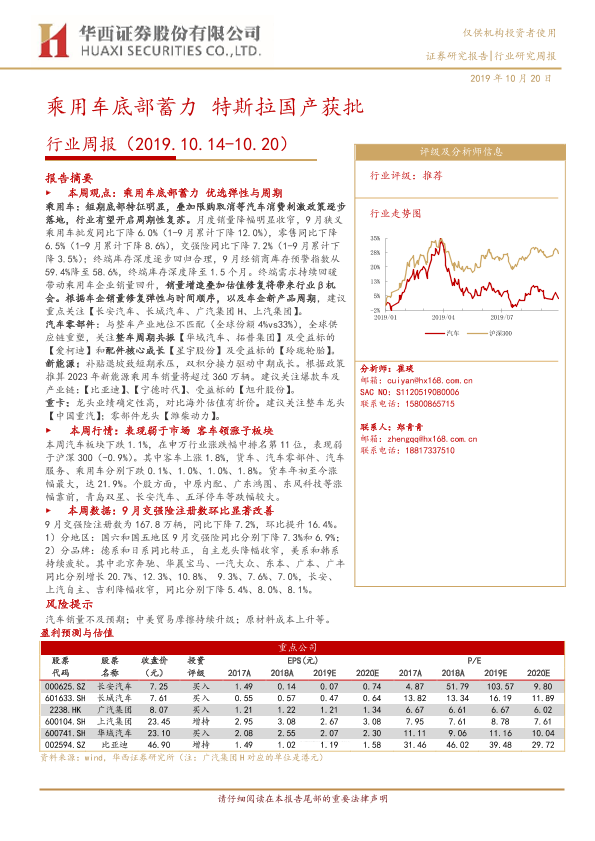 【华西证券】【20191020】20191020-华西证券-汽车行业周报:乘用车底部蓄力 特斯拉国产获批-17页